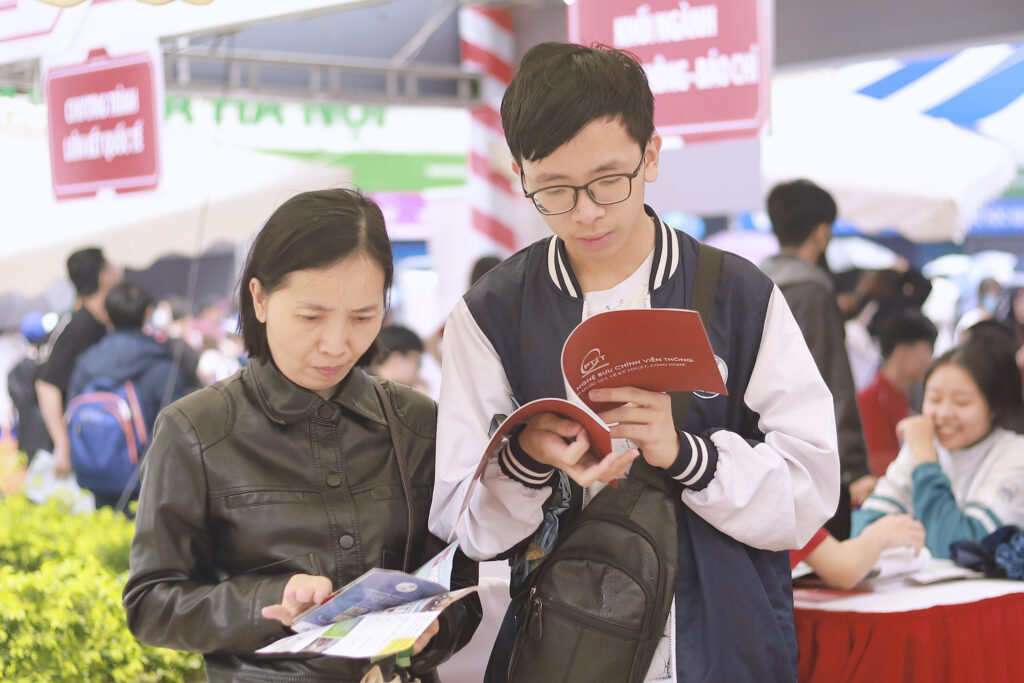 Tại gian tư vấn, các thông tin liên quan đến ngành Trí tuệ nhân tạo, chương trình học, môi trường đào tạo và cơ hội phát triển sau tốt nghiệp đã được giới thiệu một cách đầy đủ, rõ ràng. Nhiều phụ huynh và học sinh chăm chú đọc tài liệu, lắng nghe tư vấn và đặt ra những câu hỏi thực tế về nội dung học tập, phương pháp đào tạo cũng như yêu cầu đầu vào của ngành. Sự quan tâm đó cho thấy sức hút ngày càng lớn của lĩnh vực AI trong bối cảnh công nghệ phát triển mạnh mẽ và nhu cầu nhân lực chất lượng cao ngày càng tăng.
